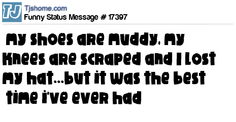 X my shoes are muddy, my knees are scraped and I lost my hat...but it was the best time i've ever had