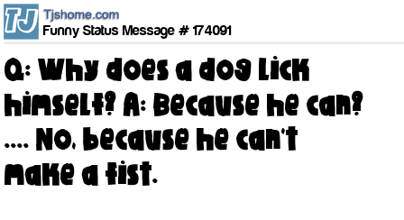 X says Q: Why does a dog lick himself? A: Because he can? .... No, because he can't make a fist.