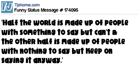 - # 196669 Half the world is made up of people with something to say but can't & the other half is made up of people with nothing to say but keep on saying it anyway.'