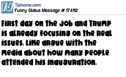 X says First day on the job and Trump is already focusing on the real issues, like argue with the media about how many people attended his inauguration.