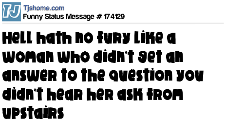 X says Hell hath no fury like a woman who didn't get an answer to the question you didn't hear her ask from upstairs