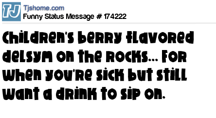 - # 90498 come up with a new drink: Nyquil on the rocks. It's for when you feel sick but still want to be social.