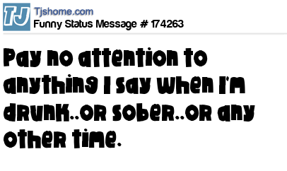 X says Pay no attention to anything I say when I'm drunk..or sober..or any other time.