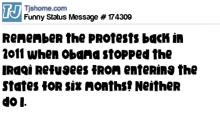 X Remember the protests back in 2011 when Obama stopped the Iraqi refugees from entering the States for six months? Neither do I.