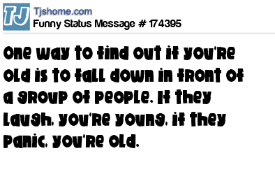 X says One way to find out if you're old is to fall down in front of a group of people. If they laugh, you're young, if they panic, you're old.