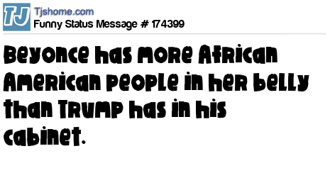 X is Beyonce has more African American people in her belly than Trump has in his cabinet.