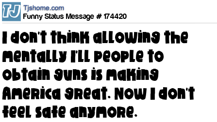 X is I don't think allowing the mentally I'll people to obtain guns is making America great. Now I don't feel safe anymore.