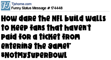 X says How dare the NFL build walls to keep fans that haven't paid for a ticket from entering the game!"  #NotMySuperBowl