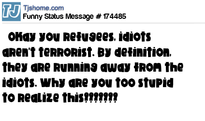 X says Okay you refugees, idiots aren't terrorist. By definition, they are running away from the idiots. Why are you too stupid to realize this???????