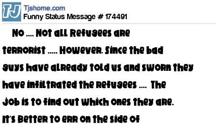 - # 174485 Okay you refugees, idiots aren't terrorist. By definition, they are running away from the idiots. Why are you too stupid to realize this???????