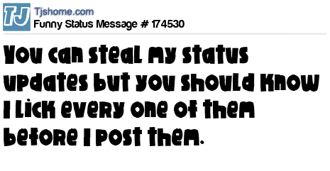 - # 43554 thinks it's ok to steal my status updates, but I just wanted to warn you that I lick each one before I post them.