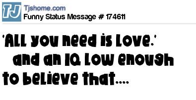 X says 'All you need is love.' and an IQ low enough to believe that....