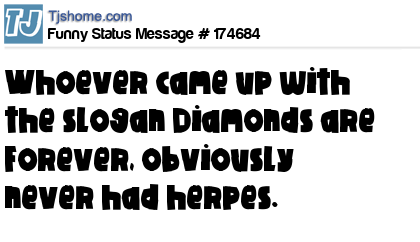 X says Whoever came up with the slogan Diamonds are Forever, obviously never had herpes.