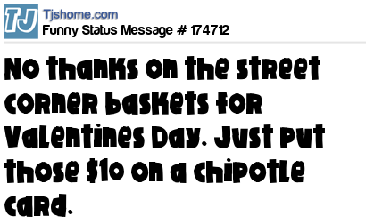 X says No thanks on the street corner baskets for Valentines Day. Just put those $10 on a chipotle card.