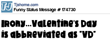 - # 164215 I find it ironic that Valentines Day is abbreviated as VD