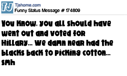 X says you know, you all should have went out and voted for Hillary... We damn near had the blacks back to picking cotton... smh