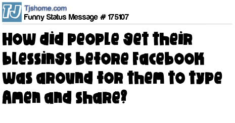 - # 164372 I wonder how people used to receive their blessings before Facebook was invented for them to type AMEN and I RECEIVE