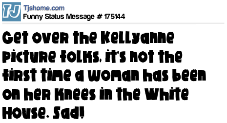 X says Get over the Kellyanne picture folks, it's not the first time a woman has been on her knees in the White House. Sad!