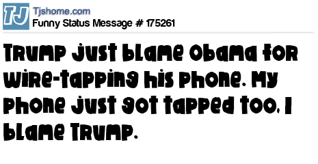 X  Trump just blame Obama for wire-tapping his phone. My phone just got tapped too, I blame Trump.