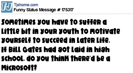 - # 119976 Some people suffered in their youth which helped them succeed later in life. For example, if Bill Gates had gotten l@id in high school, there would have been no Microsoft.