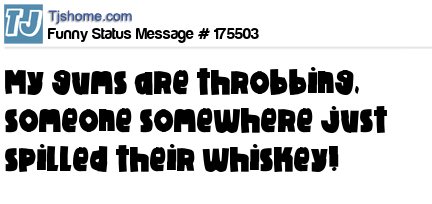 X says My gums are throbbing, someone somewhere just spilled their whiskey!