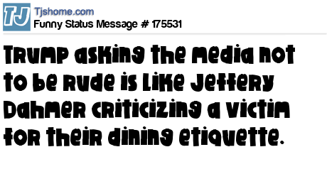 X says Trump asking the media not to be rude is like Jeffery Dahmer criticizing a victim for their dining etiquette.
