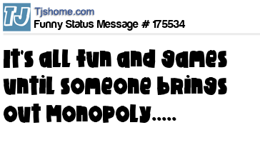 - # 84226 My famly takes monopoly very serious. Everyone brings their own calculator cuz we dont trust any Bankers since the bailout!