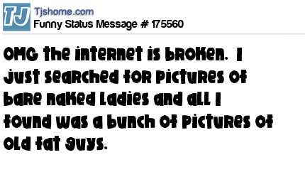 X says OMG the internet is broken. I just searched for pictures of bare naked ladies and all I found was a bunch of pictures of old fat guys.