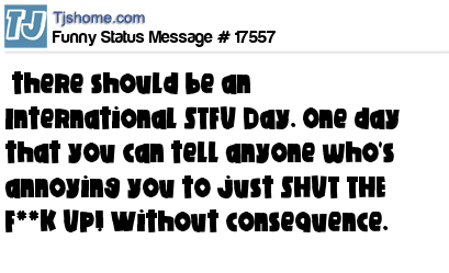 X says there should be an International STFU Day. One day that you can tell anyone who's annoying you to just SHUT THE F**K Up! Without consequence.