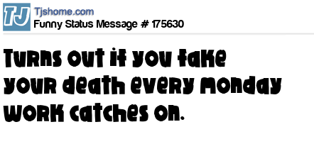 - # 133903 I'm going to start a new trend... Work tailgating. I'll be in the parking lot at 5am every day drinking and grilling. I hope it catches on...