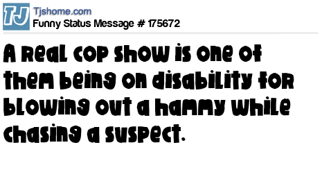 X says A real cop show is one of them being on disability for blowing out a hammy while chasing a suspect.