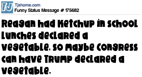 X says Reagan had ketchup in school lunches declared a vegetable, so maybe Congress can have Trump declared a vegetable.