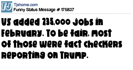 X says US added 235,000 jobs in February. To be fair, most of those were fact checkers reporting on Trump.