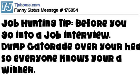 - # 165638 Job Hunting Tip: Before I go into a job interview, I always dump Gatorade over my head so everyone knows I'm a winner.