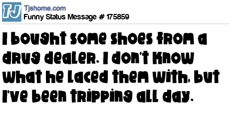 - # 153351 I bought shoes from a drug dealer today. Don't know what he laced them with but I have been tripping all day!