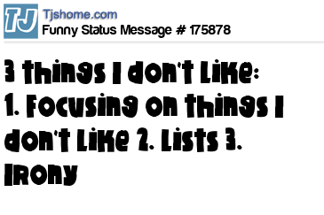 X 3 things I don't like: 1. Focusing on things I don't like 2. Lists 3. Irony
