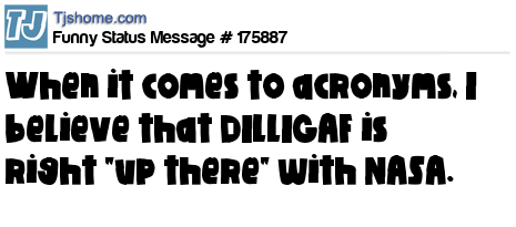 X says When it comes to acronyms, I believe that DILLIGAF is right "up there" with NASA.