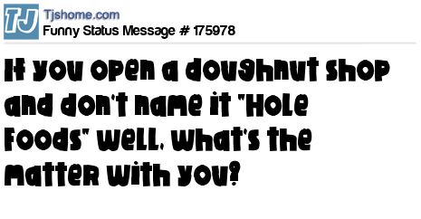 X says If you open a doughnut shop and don't name it "Hole Foods" well, what's the matter with you?