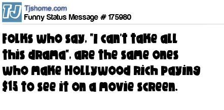 X Folks who say, "I can't take all this drama", are the same ones who make Hollywood rich paying $15 to see it on a movie screen.