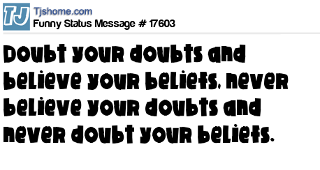 X Doubt your doubts and believe your beliefs, never believe your doubts and never doubt your beliefs.