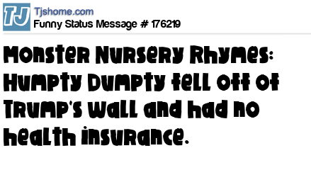 X says Monster Nursery Rhymes: Humpty Dumpty fell off of Trump's wall and had no health insurance.