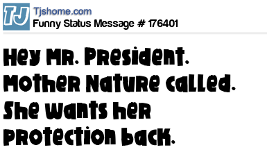 X says Hey Mr. President. Mother Nature called. She wants her protection back.