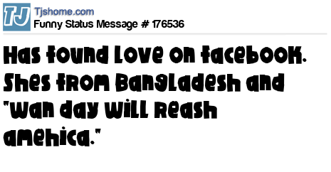 X says Has found love on facebook. Shes from Bangladesh and "wan day will reash amehica."
