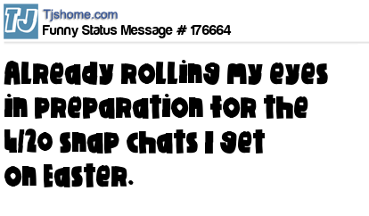 X says Already rolling my eyes in preparation for the 4/20 snap chats I get on Easter.