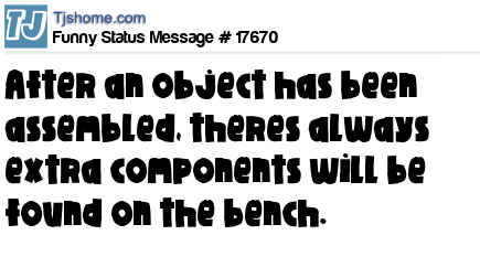 X says After an object has been assembled, theres always extra components will be found on the bench.