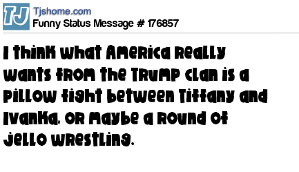 X says I think what America really wants from the Trump clan is a pillow fight between Tiffany and Ivanka, or maybe a round of jello wrestling.