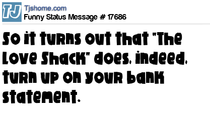 X So it turns out that "The Love Shack" does, indeed, turn up on your bank statement.