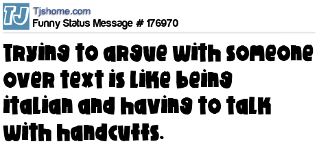 - # 127186 Trying to argue with someone over text is like being italian and having to talk with handcuffs on.