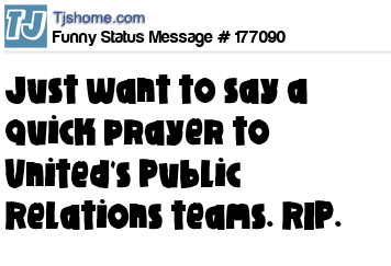 X says Just want to say a quick prayer to United's Public Relations teams. RIP.