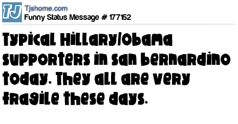 X says Typical Hillary/Obama supporters in san bernardino today. They all are very fragile these days.